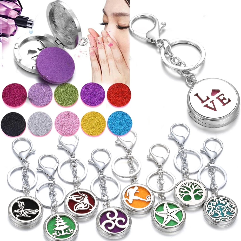 Name: LLavero de joyería aromaterapia, difusor de aceite esencial de Perfume de acero inoxidable de 34MM, llaveros de medallón, llavero de árbol de amor, joyería
