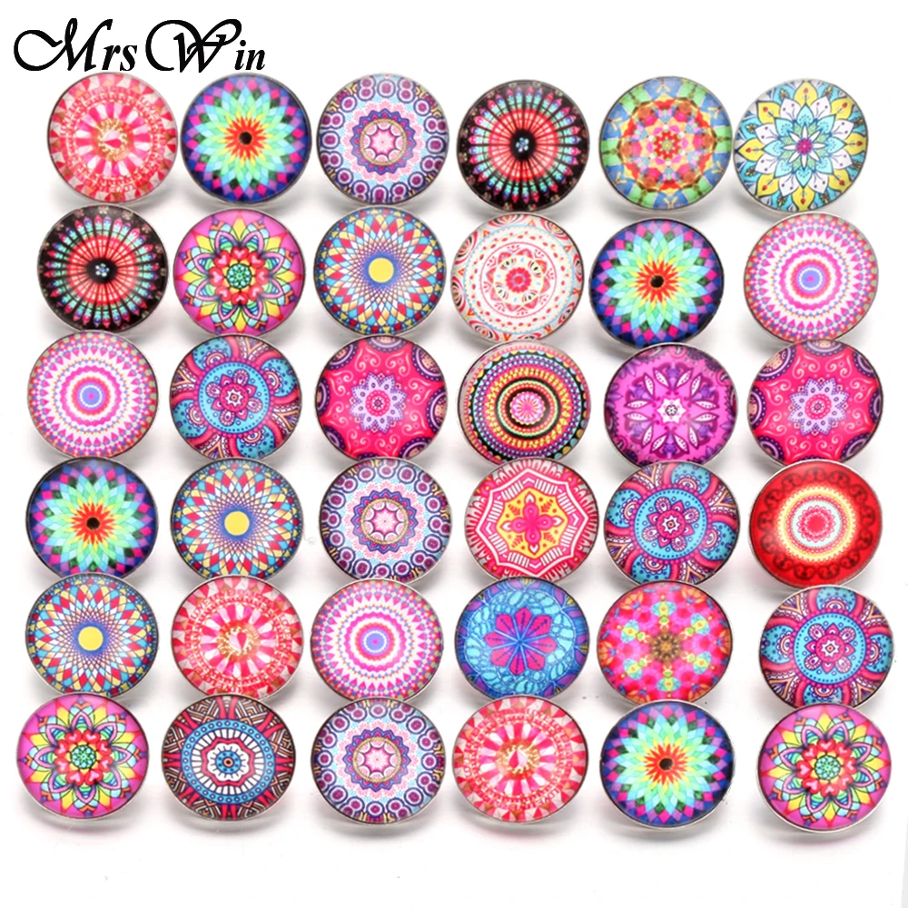 Name: 10 unids/lote Nuevo vidrio Snap mezclados, hermosa flor de algodón patrón exótico de cristal de 18mm botones para DIY, brazalete pulsera